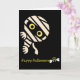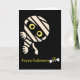 En spöktuttig halloweenkort med en glad mumiebi som tittar ut för att önska en ljus och surrig “Glad Halloween!” 🐝🎃