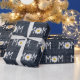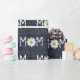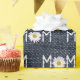 Mamma med vit daisy blomma och blad på blå jean denim-bakgrund.