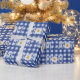 Mamma med vit daisy blomma och blad på vit och blå gingham mönster.