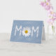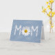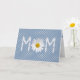Mors dag för mamma med daisy i blomblad på vit polka punkt och blå bakgrund.