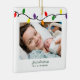 Första jul som Mor! Perfekt för nya mammor! Den nutida, moderna och rustiska julens Helgdag, fotofyrkantsdekorationer, med en fin liten färgsträng av ljus i rött, grönt, gult och lila, tillsammans med modern typografi. Lägg till 2 av dina favoritfoton för perfektens ornament! Kontakta oss på cedarandstring@gmail.com om du behöver hjälp med designen eller matchande produkter.