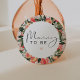Den här knappnålen har vattenfärgspersikor och ett sött handskrivet teckensnitt med texten "mamma to be". Knappen gender-neutralt är perfektens tillbehör till din lilla barndusch eller gender som visar party.