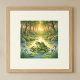 En söt och försiktig illustration med en grodmamma och hennes grodyngel, som fångar ett fridfullt ögonblick i Ivory Nests mysiga värld.