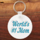 Nyckelring med Världens #1 Mamma i 3D himmelblå text. Runda och fyrkantiga nyckelringar tillgängliga i flera storlekar.