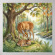En söt och försiktig illustration som visar en dovhjorts mamma och hennes kalv, och fångar en lugn stund i den mysiga skogsvärlden Ivory Nest.