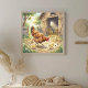 En söt och mjuk illustration med en mammahöna och hennes kycklingar, som fångar en fridfull stund i Ivory Nests mysiga värld.