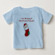 Ett baby med ett rött strumplock inuti en helgdag och ett rött barn stil som lyder "Jag är Mamma Julklapp!" på Söta baby, första julens tote bags, Tshirts och kroppsdräkter!