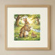 En söt och försiktig illustration med en mamma kanin och hennes ungar som fångar en fridfull stund i den mysiga skogsvärlden Ivory Nest.