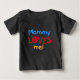 Mamma Me mörk T-shirts, långärmad T-tröjor, sweatshirts och tröjor för baby med röd text, blå text och guld med ett hjärta som läser Mamma Kärlek Me!
