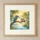 En söt och försiktig illustration som visar en mamma Kingfisher och hennes kycklingar, fångar ett lugnt ögonblick i Ivory Nests mysiga värld.
