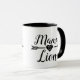 Mamma Lejon med en pil och ett hjärta i svart silhuett och ett lejont berg i hjärtat.