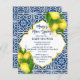 Blåplattor och citron Amalfi Positano Mediterranean stil babydusch budgetinbjudan till Marocko stil tog gräns, Mamma Mest Massistdusch är könsneutral.