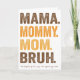 Visa kärlek och humor i Mors dag med vårt "Mamma, Mamma, Mamma BRUH"-kort! Celebrate Mamma unika blandning av kärlek, sass och ändlösa rullar av öga med denna roligt och hjärtligt hälsning