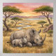 En söt och försiktig illustration som visar en mamma noshörning och kalv, som fångar ett lugnt ögonblick i Ivory Nests mysiga värld.