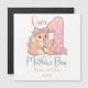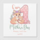 Vår första mors dagskort med super söt design för en ny mammas första mors dag. Illustrationen har en kärleksfull mamma och bedårande babyräv. "vår första mors dag" är bokstäverad i fet rosa borstskrift och dekorerad med kärlekshjärtan.