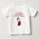 Ett baby med ett rött strumplock inuti en helgdag och ett rött barn stil som lyder "Jag är Mamma och Pappor!" på sött baby, första julen, tote bags, skjortor och kroppsdräkter!