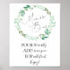 Mamma-osa-tecknet Pub med en vattenfärgsutandning av grönska och vita blommor med ord "mamma-isa pub" i ett kalligrafiskt skript för roligt.
