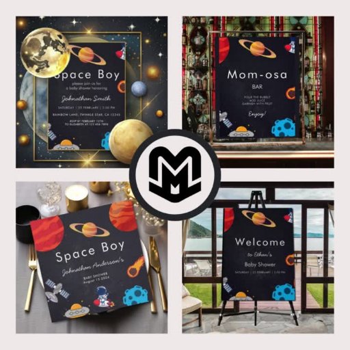 Mamma-osa Space Boy Planets Astronaut Baby Shower Poster