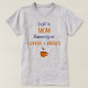 "Bara en MAMMA som springer på COFFEE & KISSES" deklarerar den här söta skjortan för Mamma. Den stiliserade texten är i blå och kompletterande orange. En brinnande kaffe kopp sitter vid grund.