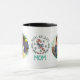 Lägg till två foton (kvadratiska bilder är perfekt eftersom de kommer att ändra storlek automatiskt för att passa in i ramar) för att anpassa den moderna julklappen mugg för MAMMA. Fotografierna kan bestå av barn, mamma, familjefotor efter behov. Handritad konst och typografi av stil.