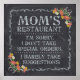 Lustigt poster- eller konsthandling, fyrkantig design, 24 x 24 " max storlek, bild: design på tangentbordsmeny - text: "Mamma Restaurant, jag är ledsen, jag tar inte speciella order, jag tar knappt förslag!"