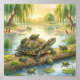 Mamma Sköldpadda och Ungar i Damm Nursery Poster