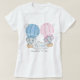 Den här vita babyduschen t-shirt-shirt-skjortan har ett vackert pojke och flickelefanter som flyger mellan molnen i en blå och rosa luftballong.