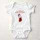 Ett baby i en julklapp och ett stil-text om Mamma T-shirts, kroppsdräkt, tote bags, kort med mera!