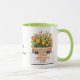 Ett utsökt Mors dag-kaffe mugg med blommigt tema. Den har en stor bukett vår blommor som består av tulpaner, daffodils och daisy. Ordalydelsen lyder "Mamma, Tack, Lycklig Mors dag" på framsidan i modern typografi. Baksidan av kopp har plats att lägga till ert budskap för att göra det mer unikt. Kolla in vår butik för matchande produkter.