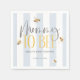 Mamma till Bee Honung Blue Baby Shower Napkins har en chic som har en rand bakgrund och känsliga honungsbin med vattenfärg.