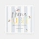 Mamma till Bee Honung Blue Baby Shower Napkins har en chic som har en rand bakgrund och känsliga honungsbin med vattenfärg.
