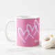 Ett tredubbelt hjärta rosa mamma kaffe mugg. Det här är en så söt valentines day-gåva till alla de älskande mammor där ute. Redigera text om du vill ändra namn eller redigera färg i bakgrunden. Drick med kärlek i åtanke.