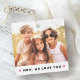Nyckelkedja med anpassningsbarnas foto och texten "Mamma, we kärlek you" nedan, upphöjd med shock rosa hjärtan.
