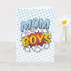 Mamma i Boys i tecknad bok stil med fet pops av roligt färg. Perfekt till Mors dag för mamman som har explosiva pojkar.