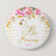 Den här söta och visuella knappen kan vara personlig med ett namn eller en titel, som mamma, mormor, systerdotter, storasyster osv. Utformningen omfattar ett arrangemang för blommigt mellan svan och rosa ros i elegant med Faux glitter konetti. Texten kombinerar handskript och sans serif typsnitt för en snyggt och ett modernt utseende. Det här är perfekt för en svan-temad babydusch. Grafik efter heyiamalice och SolroDayLove