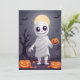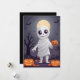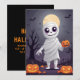 Avsluta Halloween med vår presentkort "Mummans bus"! Denna spöklika men ändå lekfulla design visar en seriefigur av en mumie insvept i trasiga bandage, med ett vänligt och busigt leende som tittar ut. Mot en bakgrund av en mörk, dimmig kyrkogård med fullmåne som kastar ett kusligt sken, fångar detta kort Halloween-stämningen.