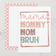 Ett lekfullt uttryck för de ständigt föränderliga sätt vi tilltalar våra mammor på! Designen visar humoristiskt resan från det tillgivna ”Mama” till det avslappnade ”Bruh”, som speglar språkets och relationernas utveckling över tid. Inramad med varma nyanser och accentuerad med söta rosa hjärtan, fångar denna lättsamma grafik den moderna familjedynamiken.