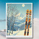 Hej från Mammoth Mountain, Kalifornien! Vi hoppas att du har en underbar skidsemester. Detta vykort har ett fantastiskt blått grått-bergslandskap med retro-skidbrädor i ett orange-stam mönster. Alla textfraser kan anpassas till kostym!
