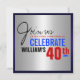Man 40th födelsedaginbjudan - röd silverblått inbjudningar