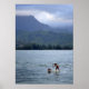 Man and Dog on Paddleboard in Hanalei Bay Poster
