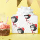 Människans ansikte med svarta glasögon och hår på födelsedagsballonger.