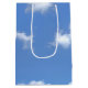 Människans ansikte med havande solglasögon och hår på födelsedagskalunbukett på himlar-bakgrund.
