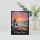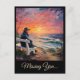Ett mycket nostalgiskt bild med en enastående man sitta på en vit bänk vid det blå hav som överväger multifärgaden himmel och solnedgången. Målningen framkallar lugn och lugn.
