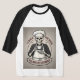 Det här är en raglan-stil T-shirt med humoristisk grafik. Konstruktionen visar upp ett skelett som bär en kock hatt och apron och som håller kopp i kaffe.