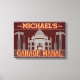 Den här lustiga personligens väggduk är perfekt för att dekorera din mangrotta. Det står: "[Ditt namn] Garage Mahal" och visar en kontur av Taj Mahal med hammare, skruvmejslar och en liten bil som ser ut som om den står parkerad i mitten. Lägg enkelt till ditt namn överst. Färg är rött, grått och klarsynt orange. Observera: Det du ser på skärm är vad du får, så var försiktig när du väljer en annan tjocklek eller form på arbetsytan.