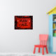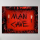 Man Cave-konst målar i rött till svart färg med tända facklor på vardera sidan. Han är konst för sin grotta. En grottmur med tidigt namnteckning ungefär som en grottmålning. Art för en underjordisk bostad eller bostad där manar hänger ut och gör manligt sak