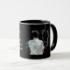 Man Holding Horse Mörk, kaffe Mugg. Digital Art. Bild av ett nära förhållande mellan en man och hans häst på svart bakgrund. Lämpligt för många olika hästraser. "En riktig häst tittar inte på hästen med ögon, han tittar på hästen med hjärtat." Helt anpassade.
