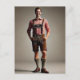 Mannen är klädd i klassisk bayersk attityd, med brunt läder Lederhosen med en grov broderi på suspenderarna och ben. Detta är en traditionell Tyskland och österrikisk kostym. Hans rödvita skjorta är nyktert stoppad i Lederhosen, med sleeverna upprullade för ett mjukt men traditionellt utseende. Han bär läderskor i mörk parade med knästrumpor som avslutar vid utrustningen. Den enastående exuderar kulturell autenticitet och charm, som belyses av hans självsäkra inställning och varma leende.