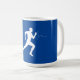 Man kör Springer Silhouette på Blue Background Kaffemugg