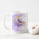 Elegant lila mån floral mugg designad speciellt för Mamma. En hjärtlig Morsdagsgåva som kan anpassas med ditt eget namn, meddelande eller speciellt datum för att göra den verkligt unik.